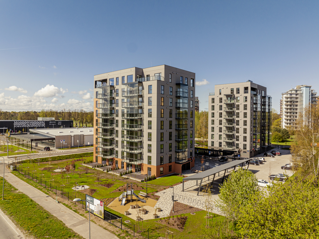 „MOHO GARDEN“ in Mežaparks, Mežezera iela 6 und 8. Zwei 9-stöckige Gebäude