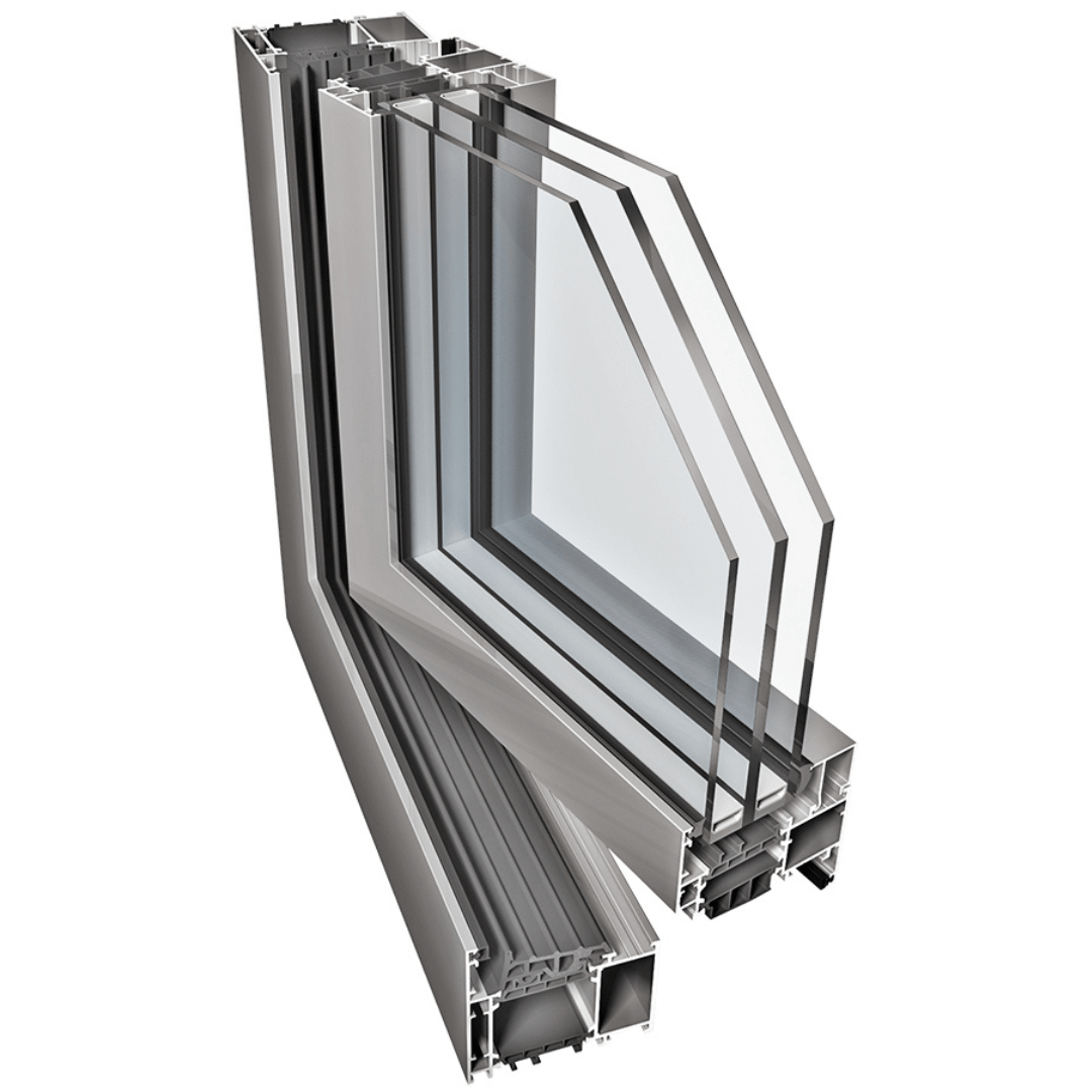 Система с трехкамерной структурой профиля и возможностью использования как фурнитуры с пазом типа «евро», так и фурнитуры, используемой для пластиковых или деревянных окон и балконных дверей.